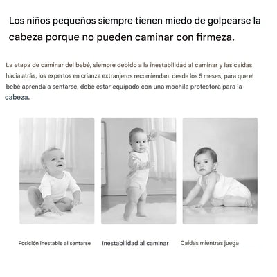Los golpes en la cabeza y espalda baja son las lesiones más comunes al aprender a caminar. Pero con este Cojín Protector de Cabeza, puedes transformar cada caída en una experiencia segura.